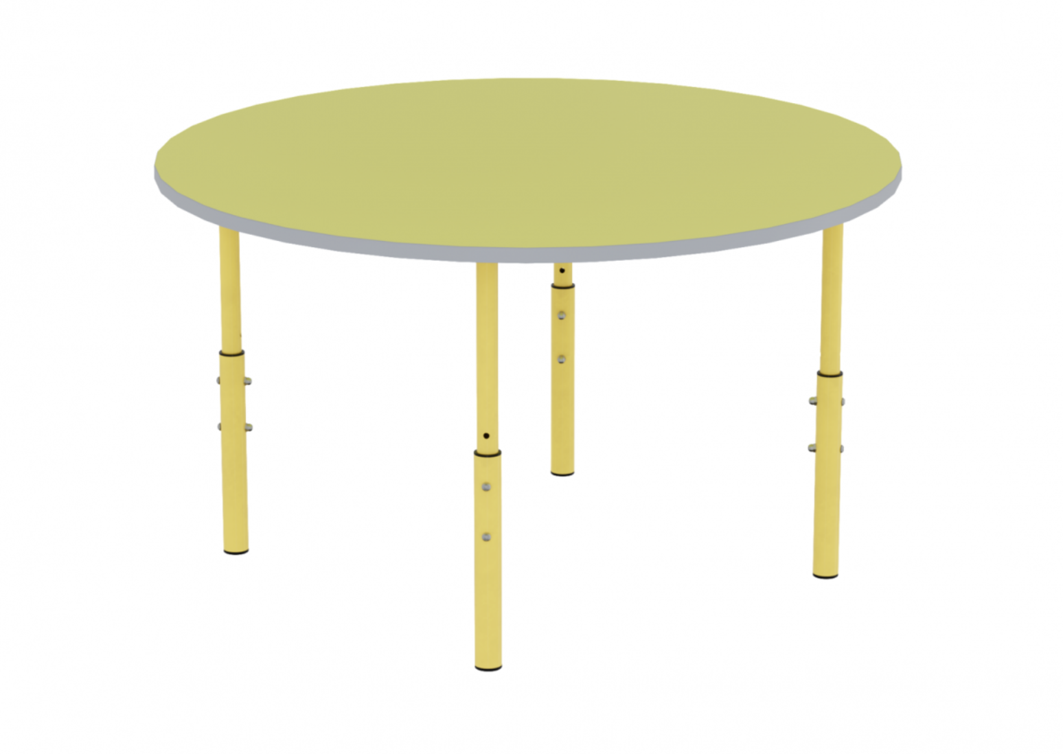 Masa reglabila rotunda, cu cadru metalic din profile rotunde cu diametrul de 25 mm, acoperit cu polimeri sub forma de pulbere, pentru protectie. Picioarele metalice permit adaptarea inaltimii mesei la 460mm si 580 mm, in functie de categoria de varsta a copiilor. Varful picioarelor este imbracat in capace de plastic, pentru a asigura protectia pardoselii.