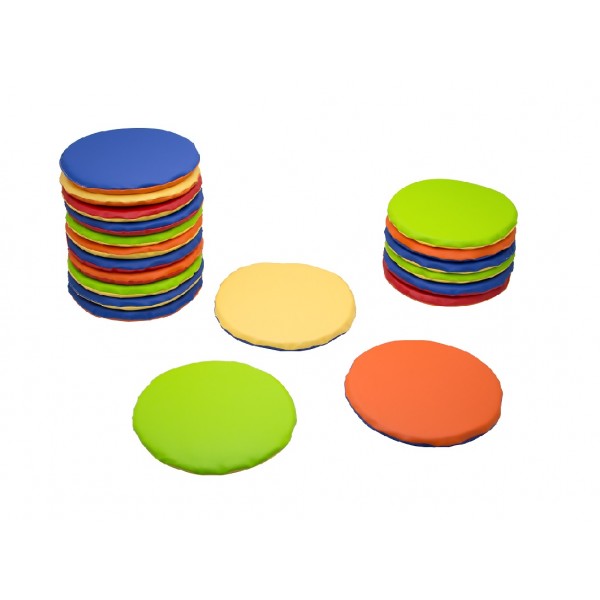 Set format din 20 de perne de podea, pentru diferite activitati la gradinita. Husele sunt divers colorate.